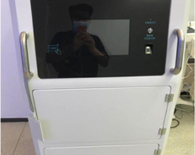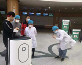 These two machines are Scitech Medical Distribution service Robots, which are specially distributed to patients with Medical products and daily necessities to reduce contact and avoid infection.